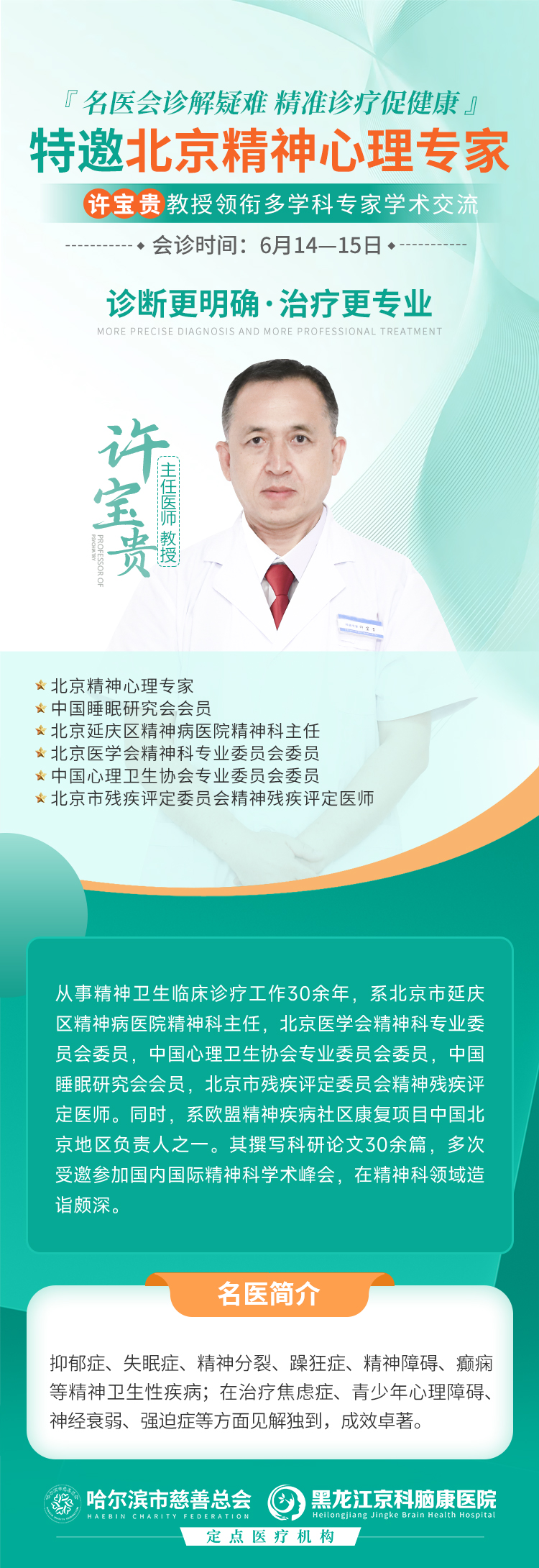 好消息来了!为了帮助大家尽快告别这些困扰,我们特地邀请到了来自北京三甲医院的重量级精神心理科专家——许宝贵主任医师